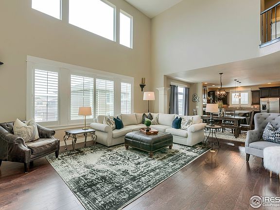 Gorgeous 6 bedroom home in Fort Collins! Great curb appeal from stone accents & covered porch. Wood floors throughout. Beautiful kitchen features SS appls, pantry, office space & separate formal dining. Great room w/ soaring ceilings & fireplace. Main floor bedroom & office. Upstairs has 4 beds including master suite w/ sitting room, 5 piece bath & walk-in closet. Basement offers family room, wet bar, bedroom & luxury vinyl plank floors. 3 car attached garage. Community pool, park & trails.