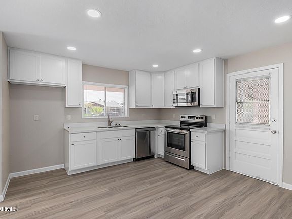 COMPLETE REMODEL w/ OPEN LAYOUT in 55+ Adult Community in Phoenix * 2 bd 2 bath 1 Carport 1214 sqft * AC 5 Yrs Old * Kitchen Overlooks Family Room * Kitchen has NEW 42'' White Shaker Cabinets w/ QUARTZ Countertops, STAINLESS STEEL Appliances (Stove, Microwave & Dishwasher) Peninsula w/ Pendant Lights & Bar seating * NEW Lighting & Ceiling Fans thru out * NEW Vinyl WOOD Floors and NEW Carpet in Bdrms * NEW Paint Inside & Out * NO POPCORN CEILINGS * MasterBdrm has WALK-IN Closet * Both Bathrooms have New Vanities w/ Quartz Countertops, Lights, Mirrors & Refinished Showers * AZ Room * Laundry Room & Storage * New Front Door * New Blinds * New Rock in Front Yard gives NICE CURB APPEAL * LARGE Private Covered Patio in Backyard * Storage Shed * Backs to OPEN SPACE, NO NEIGHBORS Behind You