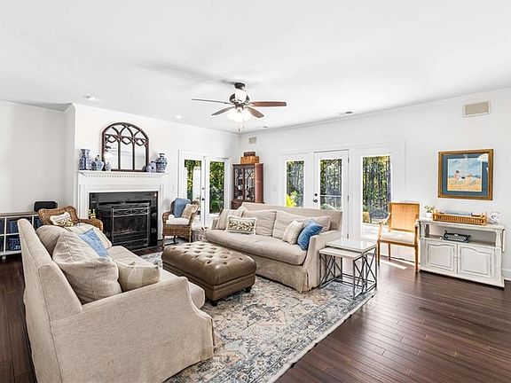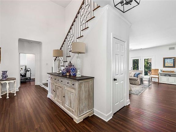 Privately tucked on 4.6 serene, wooded acres, this timeless three-sides brick Colonial blends privacy with polished sophistication and lives like a bespoke estate. A top-to-bottom refresh delivers a truly move-in–ready experience: dark bamboo wood flooring throughout the entire home sets a warm, contemporary tone; a custom-designed staircase railing anchors the entry; and every space has been thoughtfully elevated for daily comfort and effortless entertaining. The completely reimagined kitchen showcases an improved layout with widened openings to the dining and living rooms, including pocket doors for flexible flow. Culinary details impress, cooktop relocated to the back wall with exterior venting, custom cabinetry topped with quartz counters, tile backsplash, and a larger waterfall-edge island with seating. A farmhouse sink with Kingston Brass faucet and a charming breakfast nook with built-in bench complete this magazine-worthy space. Just off the main living areas, the renovated laundry room is both chic and practical—new tile, custom cabinets, quartz countertops with single-slab quartz backsplash, a stainless utility sink, deep enough for dog baths, new faucet, and a built-in dog kennel neatly tucked beneath the cabinetry. The primary suite on the main remains a serene retreat with beautifully refinished cabinetry, granite countertops, soaking tub, dual vanities, and two walk-in closets. Upstairs, smart planning created two full baths where there was once one: a new hall bath with shower/tub combo, fresh tile floors and walls, decorative trim, new vanity and fixtures; and a new private en-suite for the bedroom suite, featuring a stand-up shower, coordinated tile, decorative millwork, vanity, fixtures, and toilet. Secondary bedrooms are generous, and a custom built-in bunk, Twin over Queen, with bookshelf adds function and fun for guests or kids. French doors from the fireside family room open to a large, beautiful deck overlooking a sun-splashed, more open backyard. With coveted zoning for Dowell ES, Smitha MS, and Osborne HS, this residence pairs rare acreage and a quiet setting with curated finishes and modern systems—a luxury escape in the heart of Marietta.