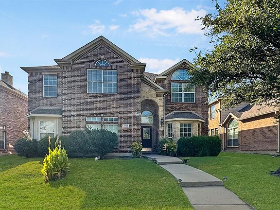 Gorgeous 5-bed, 3.5-bath home in Grayhawk community of Frisco TX, zoned to top-rated schools including Lone Star High, alma mater of 2025 NFL 6th draft pick Ashton Jeanty for sports enthusiats. Features all-brick construction accented by a stone facade, and an elegant wrought-iron staircase. Inside, you'll find soaring ceilings, and abundant natural light throughout. The spacious floor plan features a first-floor primary suite with ensuite bath, dedicated office, cozy fireplace, and a versatile media-game room. Every bedroom includes a ceiling fan and walk-in closet, while the kitchen and laundry are fully equipped with refrigerator, washer, and dryer making this home truly move-in ready. Enjoy a fenced backyard, mature trees throughout the community, and access to a refreshing community pool. Best of all, the home is within walking distance to elementary, middle, and highschool making it the perfect choice for those seeking convenience, comfort, and connection in the heart of Frisco.