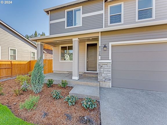 Ask about 30-year fixed rates under 5% plus an additional $5,000 in closing cost assistance with our preferred lender and save hundreds each month! This home is move-in ready. Actual photos, sample virtual tour of same floor plan. Get ready to fall in love with the Lapis! With its lush front lawn, an extra-long driveway leading to a 2-car garage, and covered front patio, this home exudes curb appeal. On the main level, you'll find a flex space that doubles as an office or formal dining room, a powder room, a great room, and a stylish kitchen with quartz island, tiled backsplash, pendant lighting, and walk-in pantry. Step through the double-wide, center-meet sliding glass doors onto a 10 x 10 covered patio, seamlessly blending indoor and outdoor living spaces for effortless entertaining. Upstairs, discover a versatile loft space, laundry room, full bathroom, and three bedrooms, including a luxurious owner's suite. With walk-in closets in every bedroom, you can finally say goodbye to fighting over closet space and hello to peace and organization. Luxury vinyl tile, high speed internet, high efficiency heat pump with AC, and solar pre-wire add a layer of convenience and practicality to modern country living. Located in Cascadia Ridge, a growing community just moments away from parks, outdoor adventures, picturesque rivers, rolling hills, and untamed wilderness. Peace, tranquility, and breathtaking sunsets await! Visit the community & model home at 1877 NE Currin Creek Drive. Let's make your homeownership dreams come true - we can't wait to meet you!