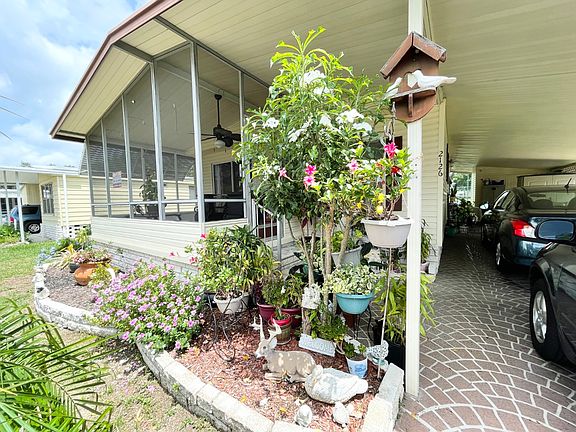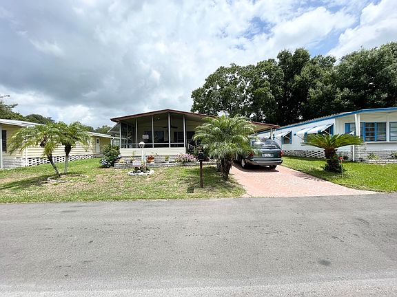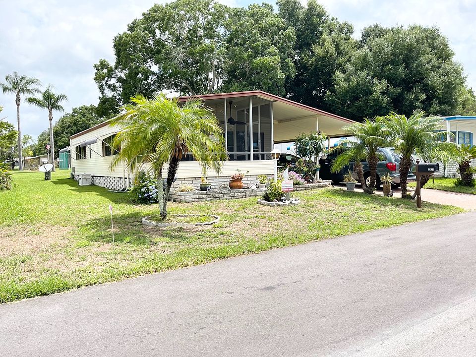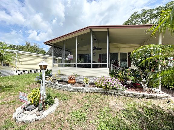 FULLY FURNISHED!!! This Palm Harbor Home is located in a 55+ community with a base lot rent of $605.74 per month. This lot rent has a few small additional charges for water, tax and trash making the total lot rent around $706.67 per month. There are many activities also included with the lot rent such as the use of the clubhouse, pool, shuffleboard and more! This community allows up to 2 small pets. It is also located close to shopping, restaurants and medical facilities. This 2 bedroom 2 bathroom clean and well maintained home has a metal roof over which was just put on the home 3 years ago. The central A/C & heat unit is only 3 months old and runs very efficiently! The home has a large back yard and is located within walking distance to the tennis court, pool and dog park! The home has several beautiful plants that wont stay with the home but would be easy to replace.... There is an attached carport with lots of room to park up to 3 vehicles or just park 2 vehicles and use the back of the carport as a covered patio! The concrete driveway as a beautiful design giving this home a lovely curbside appeal! There is a breezeway that leads to the back of the home as well! The attached storage shed has a washer and dryer and is large in size with plenty of room to store anything you wish! This would even make a great man-cave! As you enter the home you will find a lovely entry way! The galley kitchen has plenty of cabinets and laminate floors. All of the appliances are in good working condition. The lower cabinets on the left side of the kitchen have been replaced along with the counter top! Just off of the kitchen you will find the dining area with a built in hutch with more storage! There are bay windows in the diningroom allowing plenty of natural light into the home! The livingroom is large in size and has a set of sliding glass doors leading to the screen room! The screen room has ceramic tile floors and a door leading outside to the front of the home. This is a great place to enjoy a cup of coffee in the morning or a glass of wine in the evening. This could also easily be completely enclosed and turned into a Florida room, sitting room, office or whatever you wish to make it! As you head down the hallway toward the back of the home you will find a nice size closet for storage, a second bedroom which is LARGE in size with a walk-in closet (small soft spot at entry) and the main bathroom with tub/shower combo. The main bathroom has a new vanity and is ready for some minor upgrades just above the vanity such as a backsplash. Come finish this bathroom and make it your own. Just across the main bathroom you will find the LARGE master bedroom also with a walk-in closet and the master bathroom with stand up shower. This home has a combination of laminate floors, carpet and ceramic tile throughout! COME SEE THIS HOME TODAY!!! WONT LAST LONG!!!