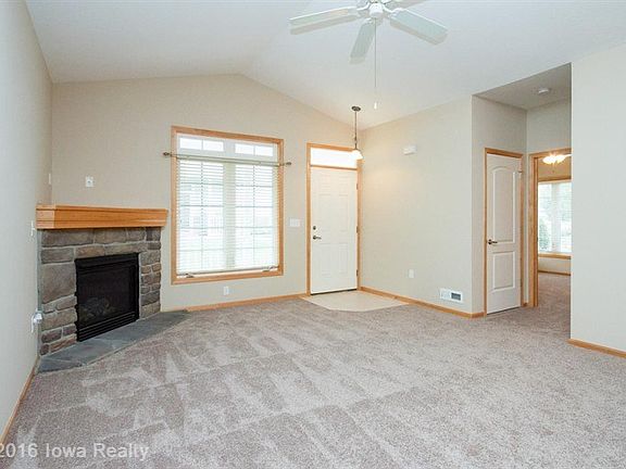 Ranch townhome with attached 2 Car garage, 2 bedrooms and 2 baths. Very open floor plan, feature vaulted and tray ceilings, ceramic tile in entries, kitchen and laundry room. All Bedrooms are equipped with ceiling fans, Master Bath has a double, tub and 4' shower, very large functional kitchen opens up into the dining and living room with corner direct vent fireplace, central vac, and pre-wired for security & surround sound. This unit has new paint and carpet.