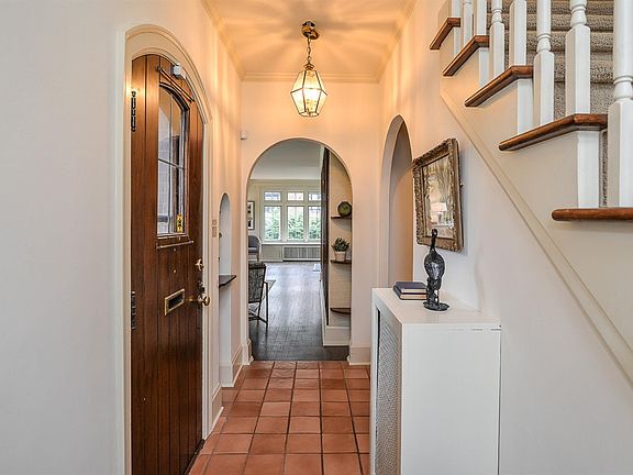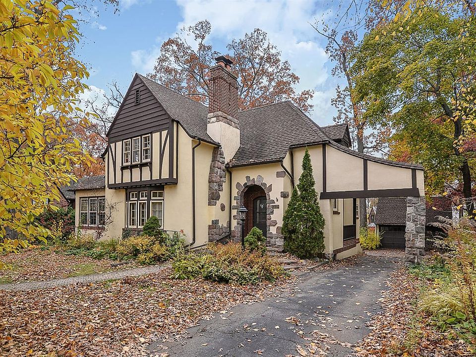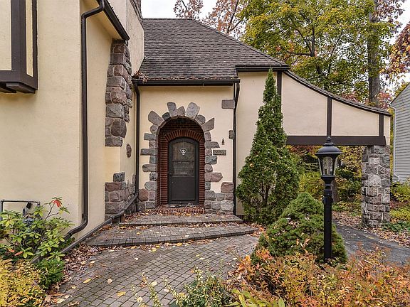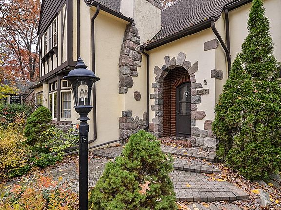 Quaint Tudor in the heart of Ives Woods. This light filled home will welcome you into the living room with a wood burning fireplace, a wall of custom book shelves, 2 large bay windows with window seats, a home office and a door leading to the large deck. The formal dining room has plenty of space for several guests and boasts the same hard wood floors as the living room. The large mud room with custom built in cupboards will house all your coats, shoes, athletic equipment and more. The oversized chef's kitchen with vaulted ceilings, wood beams, cherry cabinets, Sub-zero refrigerator and Center Island opens with French doors to the deck. Climb the grand split staircase upstairs and you will find 3 nice sized bedrooms with lots of closet space, original wood doors and vintage hall bath. In the lower level you will discover a lovely home office, full bath and 4th bedroom or rec room with egress window. Outside you will enjoy a large back yard and the 2 car garage. New Boiler, new Wall AC.