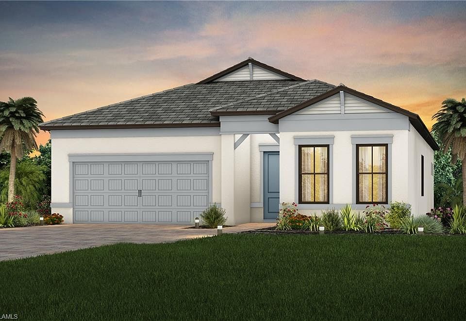 Move to Manatee Cove in October/November! This beautiful Prestige floorplan will look like a model home- 42” white cabinets, Quartz counters in kitchen and baths, stainless steel Whirlpool appliances, upgraded tile flooring, extended screened lanai, and a private backyard. Whether you’re looking for a quaint place to retire or a new home in Naples, Florida for your growing family, Manatee Cove is designed with you in mind in a premier Naples location you desire with no CDD. 164 exclusive homesites make up this gated natural gas community with low fees featuring resort style pool, cabana and fire pit. Photos are for illustration purposes only, options may vary.