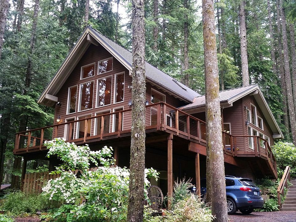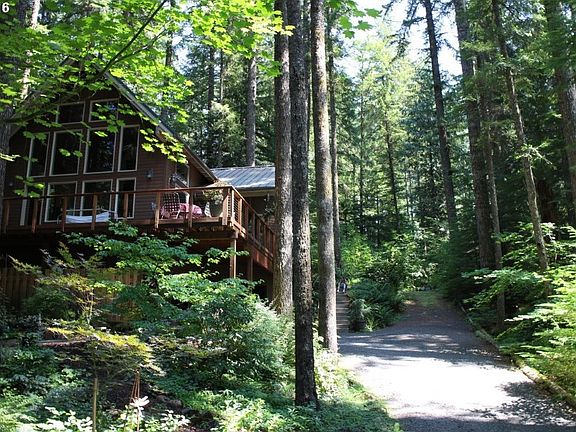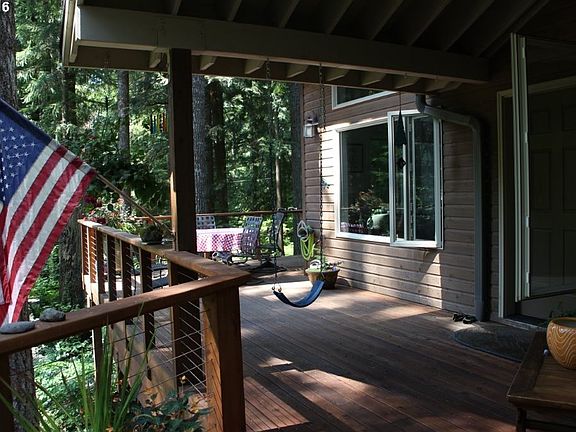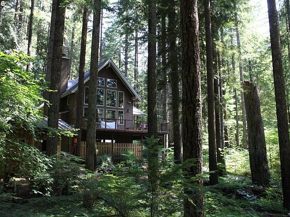 Custom built quality mountain home. Lots of light and views from every window. Gleaming hardwood floors, large basalt fireplace, vaulted ceilings add to mountain retreat experience. Open kitchen with custom cabinets and eating bar. Master with built ins, laundry chute, spacious bath, tile shower, skylights, jetted tub. Loft office w/ built in desk area. Fire pit area outside and a tree house! 1200 sq feet dry garage room for 3rd bedroom