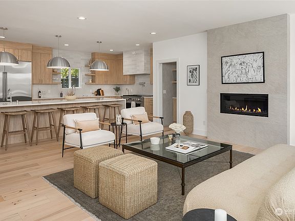 Welcome to the Heart of Magnolia! This new signature home by Elliott Bay Builder Group provides rare urban convenience with the Village just a half block away. The Modern/contemporary design features a waterfall edge island, wide plank European hardwoods, and luxury finishes rarely found in this price range. Open living and entertaining with great room concept, office/den, dining, and a multi-slide to a covered patio with Infratech heaters and outdoor fireplace. Lives large with 4 bedrooms up, plus a 5th bedroom on the lower level along with a generous rec-room with wine feature. Roof-top deck with Sound views and a quiet street with ample parking thanks to a large driveway and a 2-car garage with car charging. Quality build and location!
