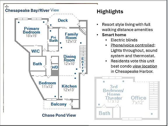 Conto has best view in community. Literally hangs out over the water--looking out all you see is water and far shore. Compact and efficient. Set up as smart home with voice controlled lights, speakers, appliances, etc. Wired with relay for wireless internet, as well as hard wired. Upstairs has been 2 offices and a video making studio, as well as a bedroom--room for both! Quiet, serene location, but just steps away from all resort type amenities. 35 min from BWI or DC airport. Restaurant/Tiki bar on property, but fine restaurants within 10 min in Annapolis. This is a friendly, mixed community. Suited for individuals or families. 2127 offered completely furnished turn key for an investor, or second home situation. Call for appointment to view, most anytime.