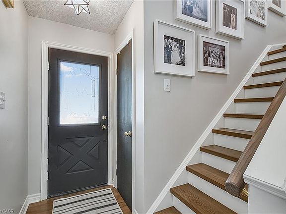 Dream home for young families and couples alike wanting to enter the Burlington market! Located in a family-friendly neighbourhood, on a quiet crescent, steps away from parks, creeks, paths and schools. This charming 3-bedroom, 4-bathroom home has been newly updated, with solid hardwood floors, elegant white kitchen with granite countertops, marble backsplash and farmhouse sink. Recently updated main bathroom and rare half bath off the main suite. Finished basement, with full bath and optional office space. This home is move-in-ready with great love and attention to detail, from the square panelled moulding on the main floor to the dreamy clad walls in the nursery. A generous backyard with mature trees and lush greenery provides the perfect retreat. Come see for yourself! Updates: Roof 2024, Dryer 2024, Range 2023, Fridge 2022, Full-bath 2019, Kitchen 2018