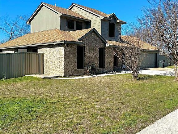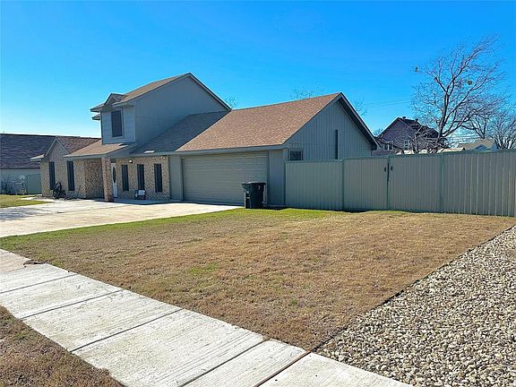 Welcome to this stunning Texas property! This beautiful home features a spacious two-story layout with 3 bedrooms and 2 bathrooms, providing ample space for you and your loved ones. The large backyard is perfect for outdoor activities and is surrounded by a metal privacy fence, including a sectioned off area for your fur babies. Additionally, a shed provides convenient storage for your outdoor equipment. Enjoy the Texas weather on the expansive covered patio in the back, offering a great space for entertaining or simply relaxing with a good book. Inside, you'll find all new carpet and fresh paint throughout, creating a clean and inviting atmosphere. The kitchen boasts modern amenities, including granite countertops, and a breakfast bar. The master bedroom is conveniently located on the primary level and features a spacious closet for all your storage needs. The open concept living and dining areas provide a seamless flow and plenty of room to entertain guests. Other notable features of this property include a large driveway, a 2-car garage, a sectioned off yard for your furry friends, and a doggy door for their convenience. Situated in a quiet and friendly neighborhood, this home offers a peaceful retreat while still being within close proximity to schools, parks, and shopping centers. Don't miss the opportunity to make this incredible property your new home. Schedule a showing today and experience the comfort and convenience of living in this Texas gem.