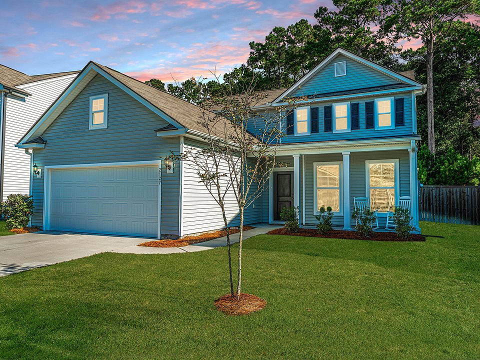 Oakfield is one of the most convenient and desirable neighborhoods on Johns Island. This home is turn-key ready with neutral paint colors, a fenced backyard, plenty of natural light and lots of additional upgrades. This private homesite backs to a pond and wooded buffer. As you enter the front porch welcomes you. The foyer is spacious and has glass doors opening to a flex room which currently serves as a home office. This room would also work well as a formal room or playroom. The kitchen is open to the family room, dining area and features a huge island. The kitchen is a chef's delight with granite countertops, abundant cabinet space with crown molding, spacious pantry, and a tiled backsplash. The home has an upgraded appliance package which includes a 5 burner gas range. The family room has a 4' bump out which adds extra space. The dining area opens to the screen porch and patio which overlooks the large private backyard. The large primary bedroom suite is downstairs which features a tray ceiling with crown molding, upgraded bathroom with an oversized shower, dual vanity, water closet and a spacious walk-in closet. The upstairs welcomes you to a large loft, two nice size bedrooms and a large bathroom. The loft is spacious enough to add a 4th bedroom if needed. Additional upgrades include; whole house gutters, driveway extension (2'on each side), HVAC air filtration system, tankless water heater, full yard irrigation, and blown & batt attic insulation. The Amenity Park includes a 25 meter swimming pool, zip line, putting green, horse shoes, play park and so much more! Just minutes from historic downtown Charleston, and a short drive to local beaches.
