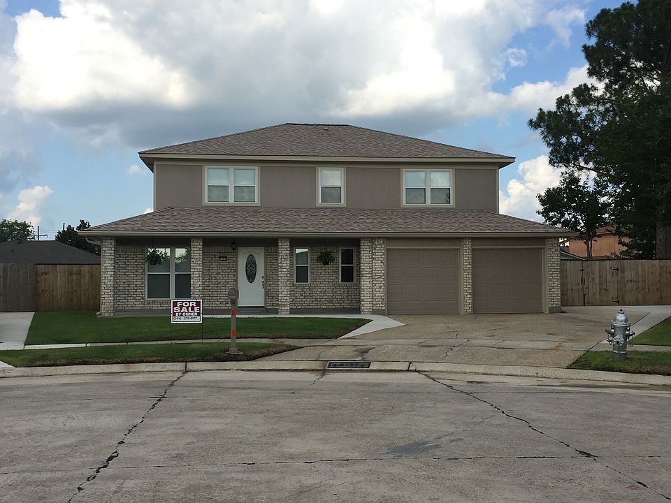 Completely RENOVATED 4 bd-2 1/2 ba In a Spanish Oaks CUL DE SAC. New architect shingle 30 yr roof. New A/C unit-Doubled insulated windows. Huge back yard with a new covered patio. All stainless steel appliances in kitchen with a large island. Call 504-390-8077 to see home. No owner finance.