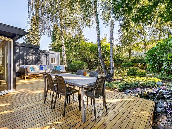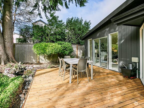 Fantastic mid-century inspired spacious one-level home with beautiful mature gardens. In-city oasis. Summer outdoor living at it's best: gorgeous oversized deck directly accessible from your family rm as well as your primary bedroom! Abundance of daylight throughout the home. Lovely year around garden views thru a wall of large windows & sliding glass doors. Living room with large corner window overlooks private entryway path with outdoor landscape night lighting. Formal Dining room. Kitchen with 2nd dining area & breakfast counter. Spacious Family rm. A variety of mature trees enhances the feeling of privacy. Recent city-sidewalk additions complete this quiet, conveniently located neighborhood. Close to transit center, parks & bike lanes.