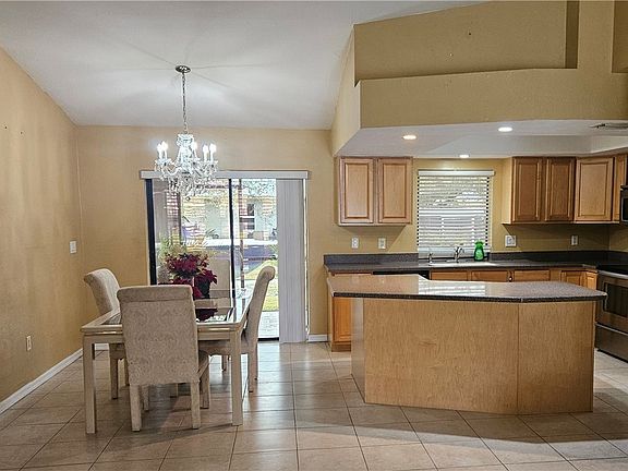 3-bedroom, 2-bath home featuring a split floor plan and tile floors throughout. The heart of this home is its well-designed island kitchen, showcasing modern stainless steel appliances, wood cabinets and a pantry.