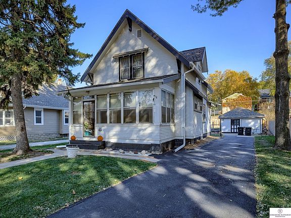 Contract Pending. Welcome to a little piece of history, this property was the childhood home of Bill Farmer an Omaha artist/sculptor. Youll find the original woodwork on the main floor & HW flooring throughout. Enjoy the huge entry with adorable gossip bench inviting you to a bright & cheery living room. This home has lots of windows for natural light. In the kitchen there are plenty of cabinets with gas stove & refrigerator included & enjoy dining in the formal dining room. You can also enjoy relaxing on the enclosed front porch. An unfinished basement provides extra storage or finish for addl living space. 2022 Roof & Gutters, 2021 Asphalt Drive, 2018 Furnace. Lots of parking including paved alley access. Garage currently is used for storage & would need modifications to use as a garage.