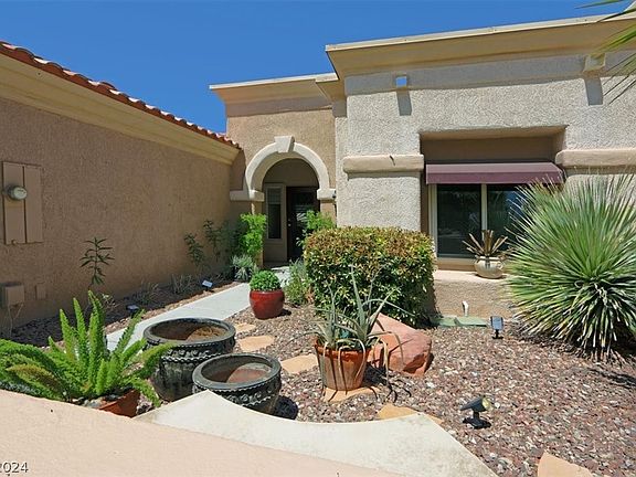 Remodeled townhome attached on one side, in age-qualified Sun City Summerlin! Elevated area up on the ridge! Pinnacle Community Center and Eagle Crest Golf Course are just down the hill! Seller purchased this open floor plan, contemporary remodel in June 2020 for $415,000, then added another approx. $55,500 in brand new heating and a/c unit, new Andersen windows and patio doors, customized window blinds, new garage door opener. Plank tile flooring throughout, quartz counter tops! Primary bedroom connected to spa-like bathroom, w/dual sinks, soaking tub, sep. shower! Secondary BR adjacent to remodeled hall bath! Private front courtyard, screened in covered patio, direct view to greenbelt, mountain view! KITEC plumbing repairs completed 2010, per building dept. records. 2-car garage, built in cabinets, golf cart parking space. Laundry room w/storage is inside adjacent to kitchen!