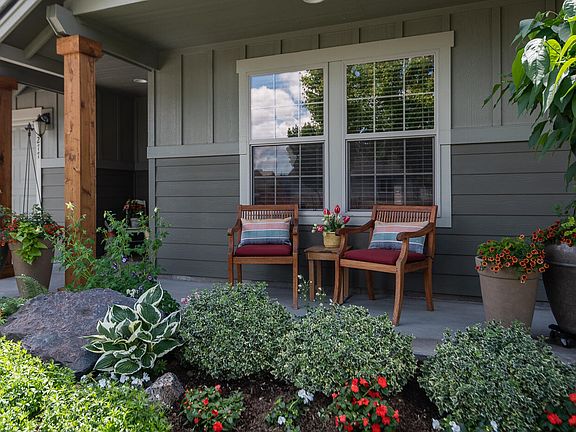 Beautifully maintained single level home! Great Room with vaulted ceiling, corner fireplace with floor-to-ceiling stacked stone surround & custom wooden mantel. Spacious kitchen featuring large island, quartz counters, tile backsplash, stainless appliances & pantry. Good separation for 2 guest bedrooms, full hall bath & primary suite. Primary bath with shower, double sinks & walk-in closet. Glass doors off dining area opens to an amazing custom designed backyard area featuring expansive custom covered deck that leads to paver patio/sitting area, water feature & fully fenced. Great outdoor entertaining area! Large shed/working area with workbench & electric power. Double car garage with gated RV parking on the side of the garage with RV 30 amp electric. Central air conditioning. Convenient Bend location to shopping, restaurants, trails, park with play structure & medical facilities.