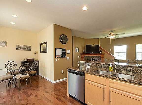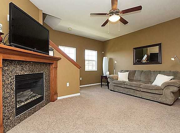 Brownstone luxury, downtown & Ingersoll amenities. This spectacular Midlands Heights 2-story town home provides the best of all worlds. This is the only unit in the complex with a gas log fireplace. Enjoy casual eating & conversation at the granite bar area overlooking the beautiful kitchen with light maple cabinets & dark stained hardwood floors. The kitchen also features stainless steel appliances, satin nickel fixtures & dark granite countertops. The eat-in dining area opens to large deck with room for a grill & patio seating. Upstairs you'll find two roomy bedrooms, each with their own full bath. In unit laundry and a main floor 1/2 bath complete the luxury in home amenities. Two car attached garage allows for additional storage. The open front green space is mostly fenced. Walk to Gateway Market, Ingersoll & downtown restaurants, the library & Papa John Sculpture Park, quiet jogging or dog walking in Woodland Cemetery just a block away, easy access to the Freeway.