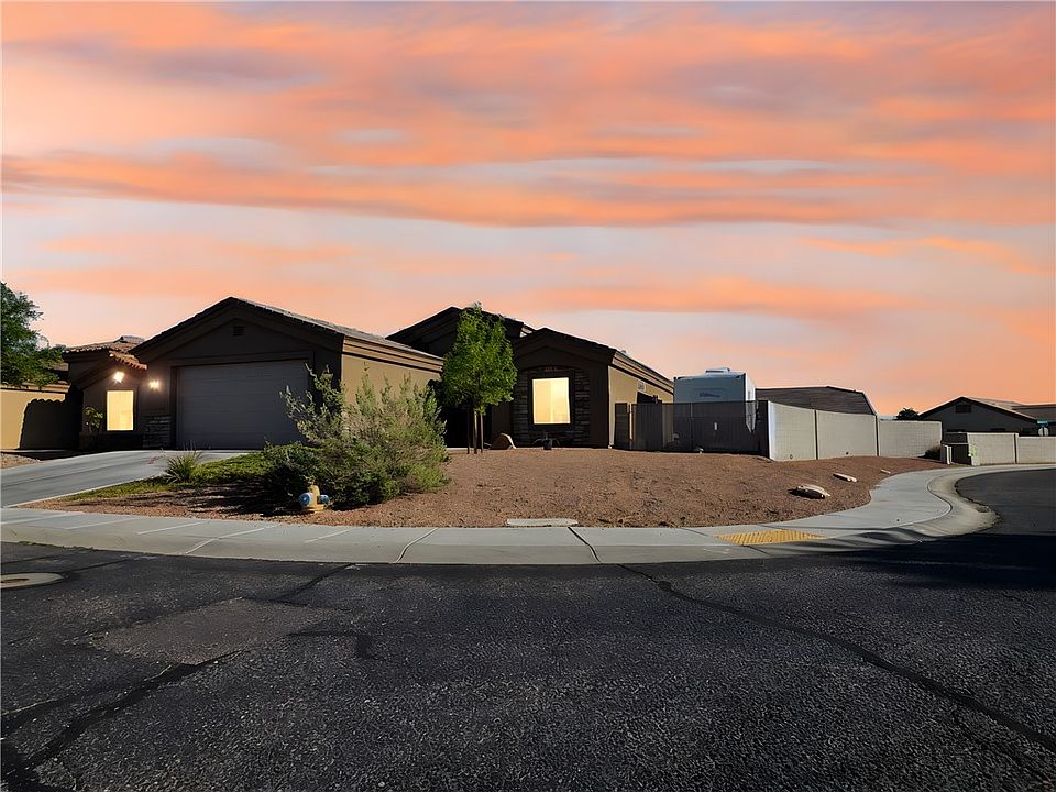 Nestled on a convenient corner lot at 2128 Horsemint Ave in Kingman, this 2019-built single-family home sits in a desirable cul-de-sac neighborhood with no drive-through traffic. Inside, the open floor plan features a spacious living room with beamed and coffered ceilings, crown molding, and an inviting atmosphere. The custom kitchen shines with a stylish backsplash, large quartz breakfast bar, and modern finishes, perfect for both everyday meals and entertaining. The primary suite offers a tray ceiling, walk-in closet, and a spa-like ensuite with a tiled walk-in shower, soaker tub and double vanity. With four bedrooms, two bathrooms, a laundry room, and plenty of storage, this 1,781 sq ft home balances comfort and function. Outside, enjoy RV parking, a private fenced backyard, and a covered patio to make the most of Arizona living.
