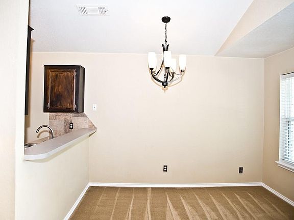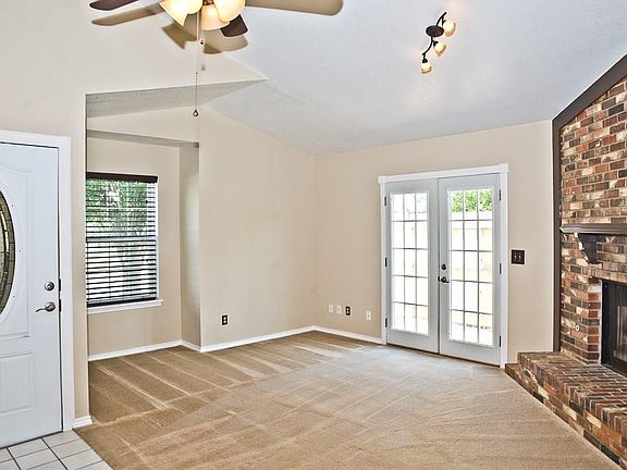 The Living Room has a corner, wood-burning fireplace! The kitchen includes the fridge, dishwasher and a gas stove. The washer/dryer are included with this home as well. The master bedroom has wood laminate flooring and the master bathroom was recently updated with a beautiful tile shower surround, updated sink & vanity area. This house has many new features replaced in 2013, including the roof, HVAC system, windows, brick/stone veneer and has a STORM SHELTER. The house has a beautiful front view with the garage being located on the back. ONE YEAR HOME WARRANTY INCLUDED.
