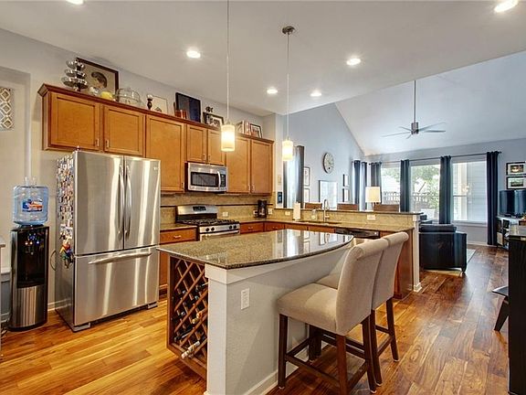 3/2.5 Mueller Community home; Master bed on 1st floor; Tile/wood laminated floors on entire 1st floor...carpet only on stairs and guest bedrooms located on 2nd floor; Kitchen: granite counter tops, tile backsplash, stainless appliances, and breakfast bar that opens to the family room; Lg master bedroom with spacious master bath (garden tub/separate shower) plus a lg walk in closet; 1 block to Ella Wooten Park/Pool; Easy access to...movies, shopping, restaurants, parks, lake, trails, Downtown and ABIA airport