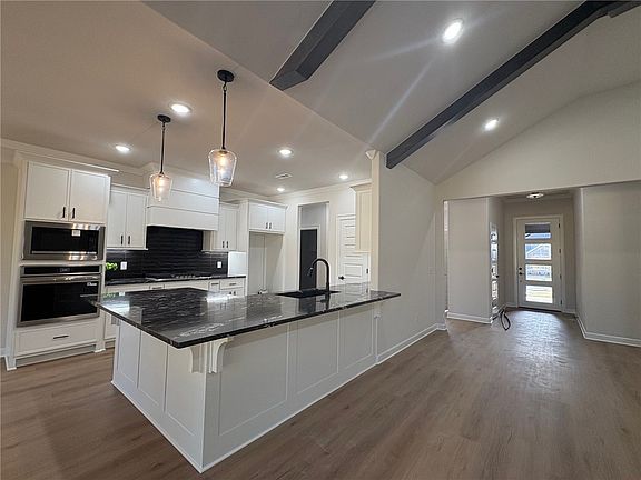 Enjoy a spacious primary suite, privately located on the left side of the home, with a seamless flow from the bedroom to the bathroom, into the walk-in closet, and directly into the utility room. On the opposite side, you’ll find three additional bedrooms and a full shared bath. At the heart of the home, a vaulted ceiling living room opens to the kitchen and dining area. The living room features an elegant electric fireplace, while the kitchen has granite countertops throughout and a breakfast nook. A conveniently located half bath sits just off the kitchen. Enjoy evenings on your covered front and back porches—your back porch overlooking a fenced backyard. A spacious 3-car garage provides ample storage and parking, completing this beautiful home’s perfect blend. This 2,282 floor plan—designed for comfort this split layout offers 4 bedrooms and 2.5 bathrooms. Set in the thriving community of Pea Ridge.