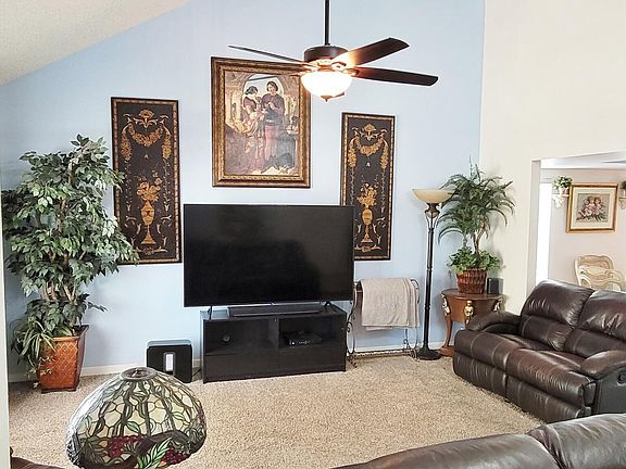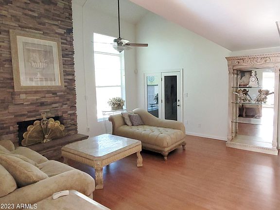 Rare opportunity in Golden Palms on a quiet, large cul-de-sac lot. Open floor plan, cathedral ceilings with 2 story stacked stone fireplace, updated kitchen, 2 living areas, and 2 flex/bonus rooms. Master suite is large and remodeled with 2 dream closets and a small sitting/office area overlooking the pool! This home is solid with all new windows, water heater, new soft water system, LED lighting, new pool pump and skimmer system, updated half bath, fresh interior and exterior paint. Pool has a removable fence and has been converted to a salt water pool for extra savings and easy maintenance! Relax under the covered patio with fans and kitchenette overlooking the firepit and lush yard with loads of privacy. Huge side yard with RV gate for all your toys and storage!
