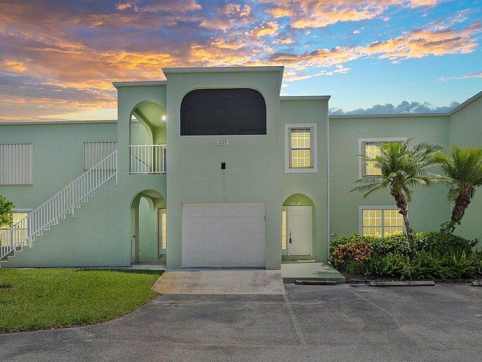 Welcome to this spacious 2-bedroom, 2-bath first-floor condo, offering comfort, convenience, and value in a peaceful, well-maintained community. This home features all tile flooring throughout, a generously sized kitchen with abundant cabinetry, and an enclosed porch that adds extra living space -- perfect for a sunroom, office, or casual updates include a 2022 water heater and A/C, ensuring energy efficiency and peace of mind. Accordion storm shutters make storm prep simple and community offers resort-style amenities including a large outdoor pool with hot tub, ample seating for guests, a clubhouse with a fitness center, sauna, and private showers. One of the standout features of this unit is its attached garage with an automatic door