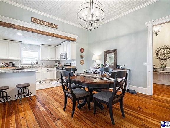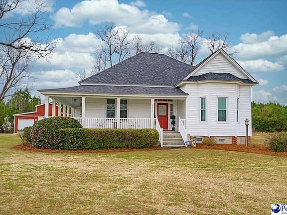Here is the Farmhouse you've been looking for!! Built in 1910, this well maintained country home still gives you all the feels of it's era, but has updated wiring and plumbing as well as modern sheetrock. You are going to absolutely love these original heart pine floors and HUGE rooms with 12 ft ceiling height throughout. Other features include beadboard ceilings, granite countertops, stainless appliances, combo dining kitchen area, large walk-in pantry and custom, hand built cabinets in kitchen. Just outside you'll find a 36x40 farmhouse style shop that could also be used to store a boat and or up to 6 vehicles. Current owner has stored a pontoon in the middle portion as it is 18-19 ft tall in the center of the shop. Come take a walk on the grounds of this property and you'll find gorgeous camellia's, several old pecan trees and crepe myrtles. This property is conveniently located less than 10 minutes from Darlington and the city of Florence. Come take a look, relax and soak up these gorgeous farmland views from the porch of this one of a kind property. But you better get here fast if you want this one!
