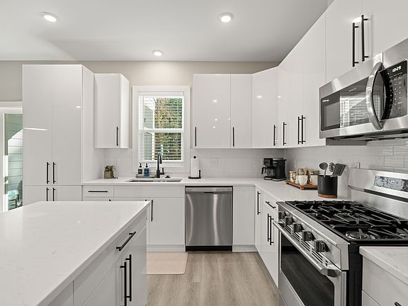 * Chef's kitchen with stainless steel appliances, quartz countertops throughout including kitchen island perfect for cooking and entertaining!