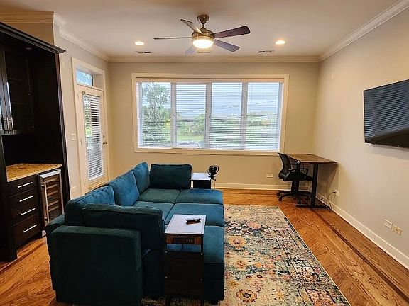 Move right into this beautifully furnished 2-bedroom, 2-bath condo in Chicago's Near West Side, just minutes from the Illinois Medical District, UIC, Rush, and the West Loop. At 1,452 sq. ft., this home blends comfort, space, and modern style perfect for professionals, small families, or corporate renters. Highlights - Spacious open-concept living area with hardwood floors, high ceilings, and a cozy fireplace - Modern kitchen with granite countertops, stainless steel appliances, pendant lighting, and a breakfast bar with seating - Dedicated workspace with desk and ergonomic chair ideal for remote work - Two private balconies one off the living room and one from the primary bedroom - Primary suite includes a king bed, walk-in closet, and en-suite bath - Dry bar with built-in wine fridge - In-unit washer & dryer - Common rooftop deck -Closed-off parking garage with one parking spot available for an additional fee ($100/month) Fully Furnished & Move-In Ready Convenient Location -- Located just steps from the 126 bus line and a short walk to the Blue Line, providing quick access to downtown, the West Loop, and O'Hare. Rent: $3,500/month Security Deposit: One month's rent (may be refundable at the end of lease term) Location: Near West Side, Chicago minutes from IMD, Rush, and downtown Minimum lease term: 3 months This home comes fully furnished, including modern bedroom sets, living room furniture, flat-screen TV, desk setup, and kitchen appliances (no utensils). Water & WiFi included Tenant pays heat & electricity One covered parking space available for $100/month Flexible lease terms short or long-term options available