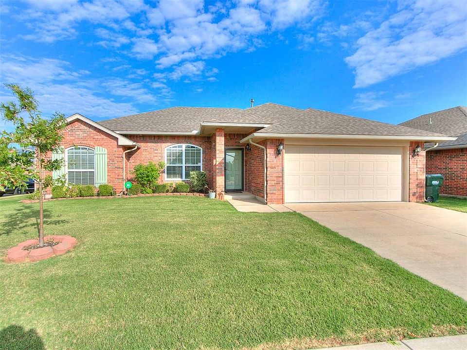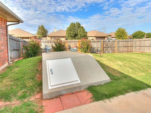 This home rests on a large corner lot with charming curb appeal. The floorplan is spacious and functional with the living, kitchen and dining all open and ready for gatherings. Hang out around the corner fireplace or at the breakfast bar while your favorite cook is preparing a special meal. Enjoy the privacy of the Primary Suite separate from the secondary bedrooms. But, that's not all! The home is energy efficient with Geothermal Heat and Air. Average utilities (Electric and Gas) are around $165 a month... AND never fear, it has a storm shelter! Don't wait! Schedule your showing now!