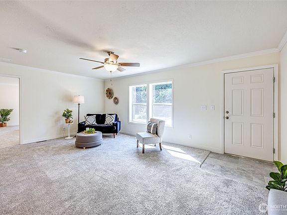 Brand new home in the waterfront community of Jefferson Beach. A charming front porch welcomes you into this one floor home featuring a great floor plan & vaulted ceilings. A spacious & private primary bedroom w/large walk in closet & designer bath w/deep soaking tub! Kitchen with eating bar, dining area, pantry and SS appliances also has access to the utility/laundry room. There is ample room in this home with 2 more bedrooms, den & guest bath located at opposite end of home from primary bedroom. Enjoy the huge back yard from the maintenance free porch! Jefferson Beach residents enjoy private beach access w/fishing pier, clubhouse & playground. Near to Seattle Ferries, golf course, restaurants, shopping, schools & outdoor adventures.