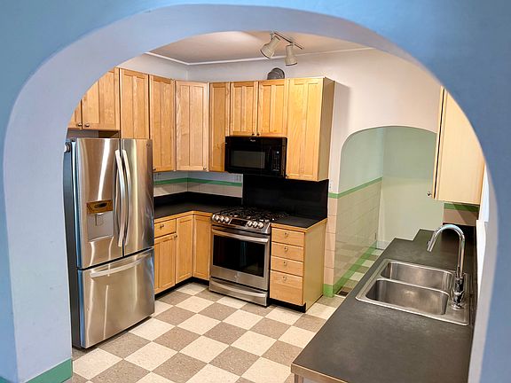 Large kitchenMature front yard foliageHigh ceilingsFull unfinished high-ceiling basementBack porch mudroomNew refrigeratorBreakfast nook