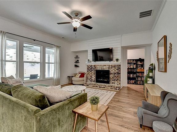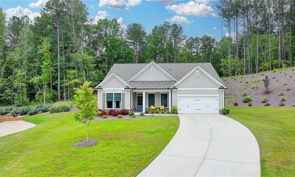 NEW PRICE! This splendid 4 bedroom, 3 bath home is situated on a beautifully landscaped cul-de-sac lot on 2 Acres, no neighbors behind you! Highly desirable One-level living provides for the ultimate comfort - high ceilings and so much natural light engulf this open concept home. Family room has a very fluid and connecting atmosphere with brick gas fireplace that overlooks a covered back porch and a private backyard. Kitchen is stunning, it features Whirlpool Stainless Steel gas appliances, Delta Kitchen Faucet, Granite Countertops, Tile Backsplash & White Cabinets with a separate dining area. You'll enjoy the sanctuary of your Primary suite with it's functionality and abundant space. Main en-Suite features Retreat style Spa Shower, double vanity, and large walk-in closet, with 3 additional bedrooms. Exterior features include brick water table and shake accents. The backyard has steps leading up to a level area that's wonderful to set up a play set or a fun night to camp out. This lot connects to Williamson Lake, the owners love the location to kayak in right from their own lot. The Glen Cove community is lovely, it provides wide open space and it's a Great location to call home.