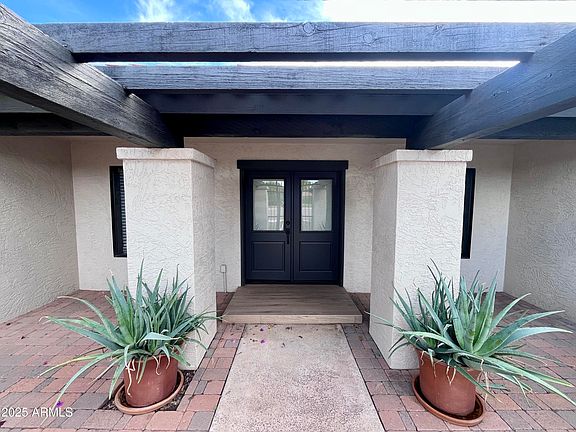 Large cul-de-sac property with a resort-style yard in the heart of Tempe. Close to shopping, dining, and convenient proximity to the 101 for easy commuting. The spacious backyard features a fenced pool, large covered patio areas, paver-stone fire pit, turf patch, a 10' RV gate with additional parking, all surrounded by mature shade trees. Inside the home, a bright & open great room boasts vaulted ceiling beams, a stunning corner fireplace, and abundant natural light with double French doors leading to the backyard. Beautiful, newer wood-look tile throughout the home. The kitchen features granite countertops, a breakfast bar & stainless steel appliances. Kitchen is open to the large family room, which has a sliding glass door to the rear patio. The primary suite features double French-door entry, dual sinks, walk-in shower, & a spacious walk-in closet. There are 2 other generous sized bedrooms near the updated hall bathroom. Oversized laundry room with cabinetry and water softener. 2 car garage with storage cabinetry.