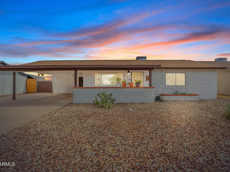 Single-level Mesa Tierra home under $400K with no HOA! Bright floorplan with wood-look tile, dual-pane windows, fireplace, and fresh paint. Major updates: All new kitchen cabinets, counters and appliances (2024), roof & A/C (2011), new tub/shower surround (2024), & no ''popcorn'' ceilings. Enjoy a spacious 7,181 SF lot with RV gate, 220V outlet, covered patio, and mature trees. Backyard includes a chicken coop—perfect for a hobby farm lifestyle (buyer to verify allowances). 2-car carport plus indoor laundry. Excellent location near US-60, Downtown Gilbert, dining, and shopping. Move-in ready with the big-ticket items already done!