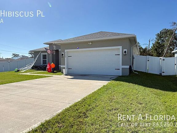 Newer Build (2023)! Beautiful 4-Bedroom, 2-Bath Corner Lot Home with Fully Fenced Yard! Basic Cable and Internet Included! Welcome to this impressive corner lot home offering the perfect blend of space, comfort, and style. The fully fenced yard provides privacy and plenty of room for outdoor activities. Step inside to a bright open floor plan designed for modern living ideal for both entertaining and everyday comfort. The chef-inspired kitchen features stainless steel appliances, white shaker cabinets, a large island with seating, recessed lighting, and a pantry for extra storage. Granite countertops throughout. The primary suite offers two walk-in closets, and a luxurious ensuite bathroom complete with a soaking tub with stand-alone faucet, dual sink vanity, separate walk-in shower, and a private water closet. The additional bedrooms are generously sized, providing comfort and flexibility for family or guests. Additional highlights include ceramic tile flooring throughout, a laundry room with washer and dryer as a convenience item and an expansive yard perfect for gatherings, play, or quiet relaxation. Centrally located near Lake Marion, Lake Hatchineha, and Lake Pierce, offering easy access to outdoor recreation and scenic lake views. Don't miss the opportunity to make this beautiful home yours. Schedule your showing today!Welcome to this impressive corner lot home offering the perfect blend of space, comfort, and style. The fully fenced yard provides privacy and plenty of room for outdoor activities. Step inside to a bright open floor plan designed for modern living ideal for both entertaining and everyday comfort. The chef-inspired kitchen features stainless steel appliances, white shaker cabinets, a large island with seating, recessed lighting, and a pantry for extra storage. Granite countertops throughout. The primary suite offers two walk-in closets, and a luxurious ensuite bathroom complete with a soaking tub with stand-alone faucet, dual sink vanity, separate walk-in shower, and a private water closet. The additional bedrooms are generously sized, providing comfort and flexibility for family or guests. Additional highlights include ceramic tile flooring throughout, a laundry room with washer and dryer as a convenience item and an expansive yard perfect for gatherings, play, or quiet relaxation. Centrally located near Lake Marion, Lake Hatchineha, and Lake Pierce, offering easy access to outdoor recreation and scenic lake views. Don't miss the opportunity to make this beautiful home yours. Schedule your showing today!