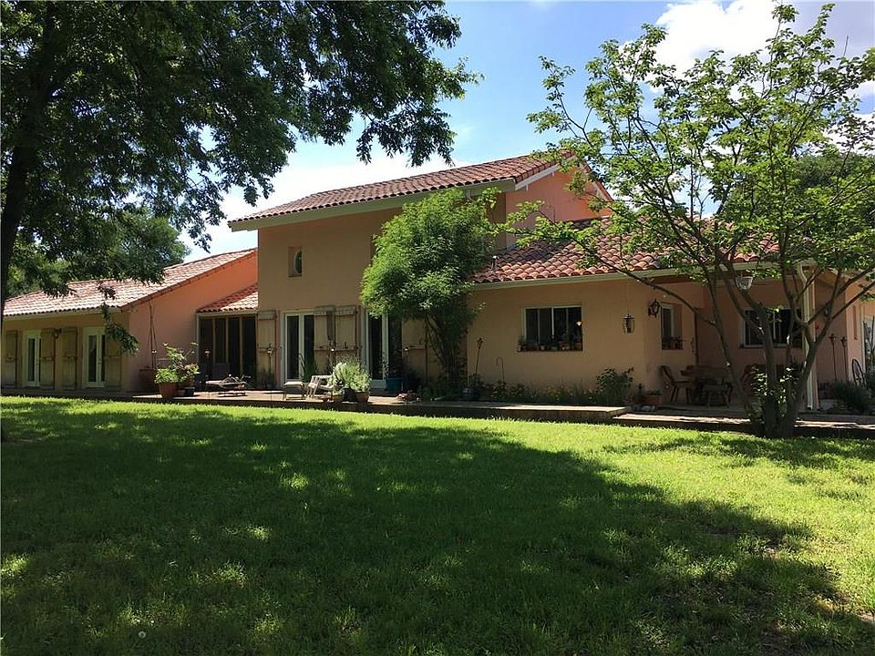 Stunning Custom Mediterranean home on 1 acre Lush Park like setting. Cathedrale ceiling in formal living with loft above formal dining. One of a kind, not your traditionnal home. Unique accents throughout, very European, no need to go to the south of France... 3 bedrooms 2 and half bath, mutiple french doors to enjoy the outside. No carpet, just tile and travertine throughout.