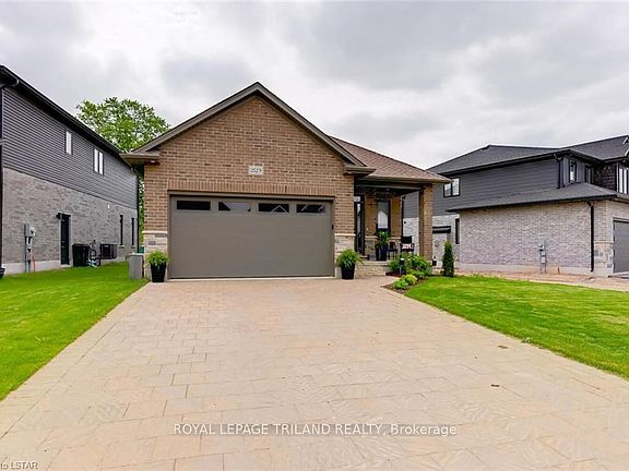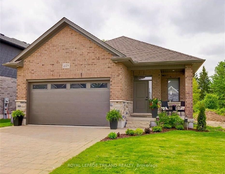 Beautiful 2 bedroom 2 bathroom detached bungalow in Eagle Ridge. This beauty is situated steps from West 5's Legacy Square, boutique retail, restaurants, nature trails and minutes to grocery stores and downtown Byron! Looking to live in a community with amenities all within minutes of your doorstep, look no further, this ones for you! This all brick detached home includes a 2 car garage, open concept living space with gas fireplace feature wall, open into dinette area and light filled kitchen boasting a large island for entertaining, tons of storage including a pantry to tuck things away and out of sight! The sliding door off the kitchen opens to a backyard ready for entertaining with a large paver stone patio! This home features, 2 large bedrooms and 2 full bathrooms, the primary bedroom suite includes an ensuite with tiled shower and glass door and a walk-in closet with built-ins.