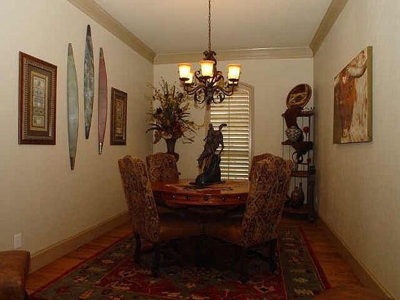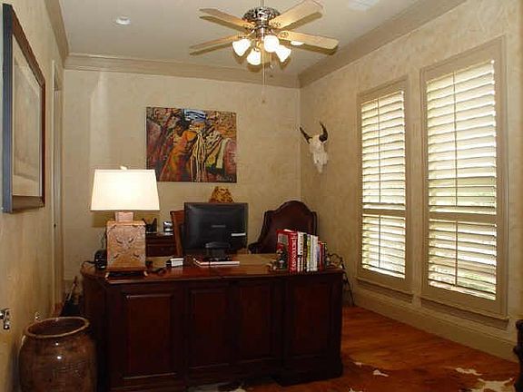 Custom home built by the Seller combines high end finishes gracefully to create an interior that is luxurious yet cozy and comfortable. Large foyer showcases wood floors, french door entry to the study, high ceilings, and an elegant cased opening to the dining room. Masterpiece kitchen complete with gas cook top, granite counters, double ovens, and under and over cabinet lighting opens to family room that offers a corner fireplace for those wintery nights. Master suite and master bath won't disappoint with granite counters, oversized shower and soaking tub, tile floors and separate large his and her closets! Guest bedroom split from master with full private bath also located on first level. Real pool table sized game room with wet bar, doors to big balcony that overlooks Hurst Park and Athletic Center. Great for watching sport events, beautiful sunsets yet private and peaceful on the week ends with no games allowed. Two additional bedrooms and card or media room also upstairs. Plantation shutters on all windows, triple stacked crown moldings, 7 inch base trim, upgraded carpet the list goes on. A must see home, that will always have panoramic views of the park from the covered patio downstairs and the balcony upstairs.