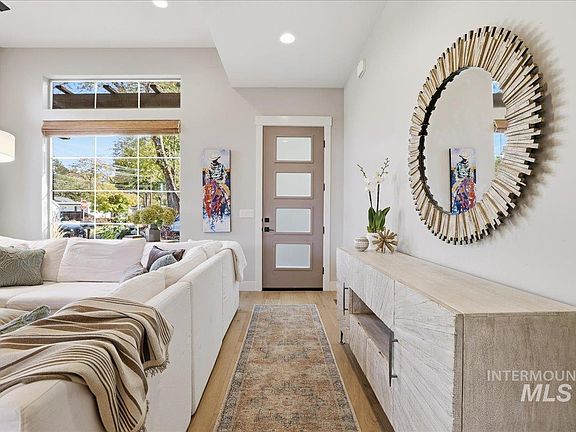 Wonderful Price Improvement!! Home in Coveted North End Sunset Area–Just Minutes from Downtown Boise, Hyde Park & Camel’s Back Park. Designed by Glancy Rockwell & built by Shiloh Homes–Stunning home w/soaring 12’ ceilings in main living areas.Open concept living, dining & kitchen. Expansive windows flood the interiors w/ so much natural light. Contemporary gas fireplace & mantel create a focal point for the living room. Chef-inspired kitchen is stylish & functional featuring a Forno gas range & fridge, SS appl, large island w/ seating for 4, walk-in pantry & under-cab & baseboard lighting. Dining Room opens to quiet courtyard patio for indoor/outdoor dining. Spiral staircase leads to recently added rooftop deck- great for entertaining & iconic sunsets. Private primary suite w/large windows & loads of light. Spacious walk-in closet, dual-sink vanity & luxurious walk-in shower. Versatile office loft outside primary suite. Secondary BR’s are generously sized & share full bath + half bath off kitchen. In home laundry w/storage, Gorgeous hardwood flooring in main living areas, tiled baths, carpeted BR’s, central forced heat & air & two-car garage w/ alley access - all in a location that blends tranquility w/accessibility. Modern architecture, light-filled interiors, and seamless indoor-outdoor living, this home is a rare find in one of Boise’s most sought-after neighborhoods! No HOA!