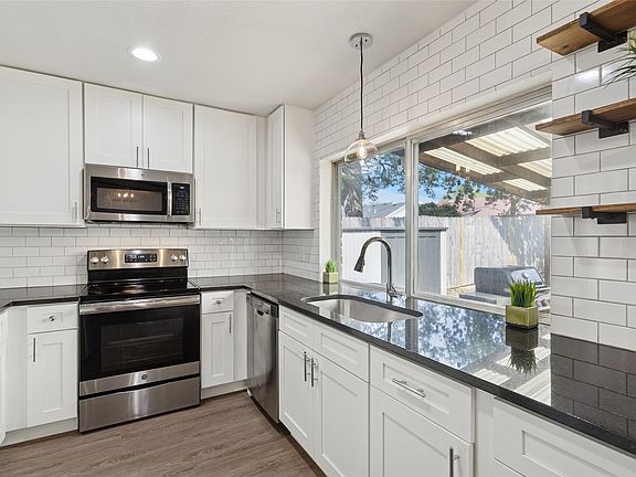 Stainless appliancesGranite top vanityPlenty of closet spaceUpdated walk-in showerClean and bright kitchen