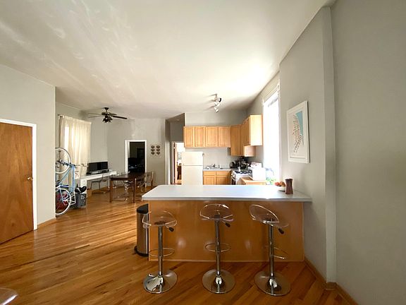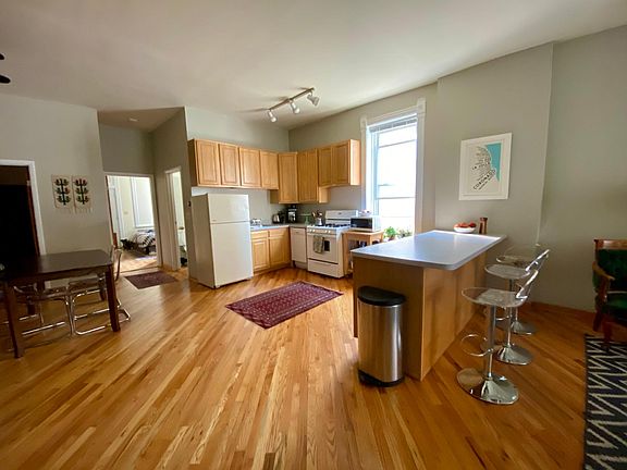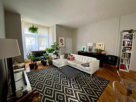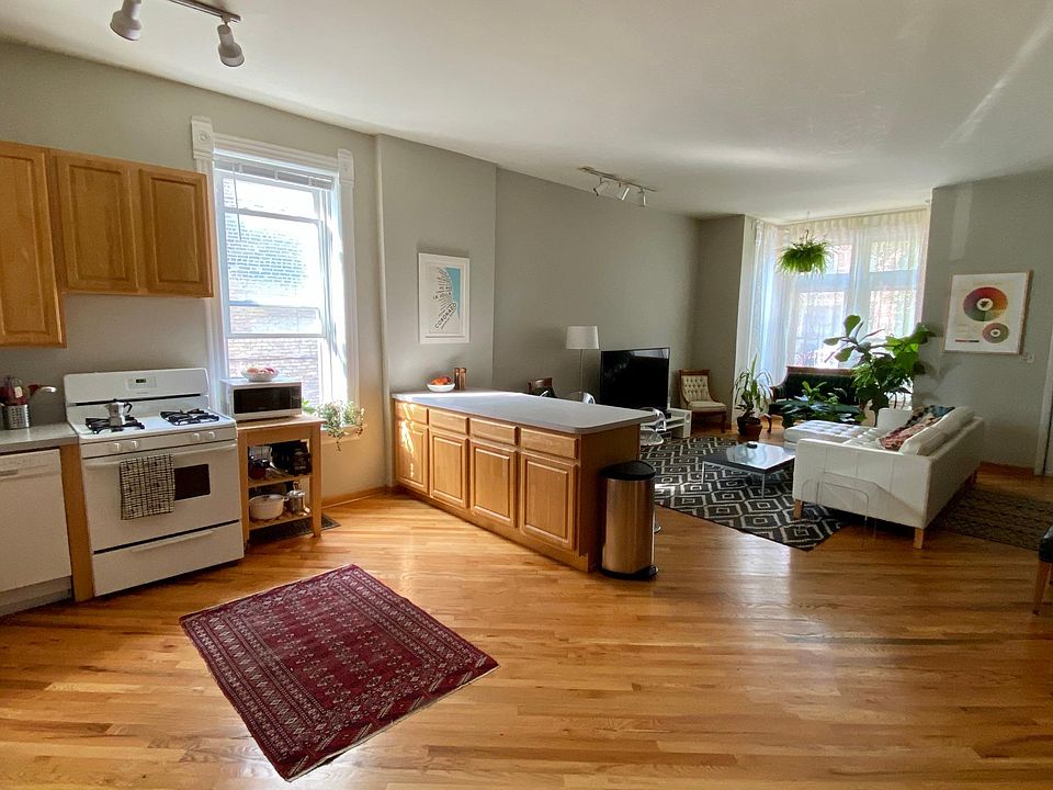 Diagonal hardwood floors, an open floor plan, and 10-foot ceilings make this Bucktown unit feel spacious and airy. Great floor plan with plenty of space for a dining room table and desk/workspace, kitchen island with seating, and a large kitchen. Kitchen features lots of cabinet space. Lots of windows in front offer good light. Second bedroom is on the smaller side and currently being used as an office. Additional features: * Back porch for grilling. Bathroom features extra large tub with jets * Good closet space: 1 large closet + 1 closet in each bedroom. * Central air conditioning and heat. No radiators - you control the temperature. * Additional storage in the basement. * Free parking in lot next to building. * Laundry in basement. Pet policy: 1 small dog or cat allowed (under 35 lb.) Neighborhood highlights: The unit is surrounded by the treelined streets of Bucktown. Walk to: * The 606 (3 blocks away) * The Western Blue Line stop (9 min walk) * The Metra (10 min walk, 10 minute ride to the Loop) * Starbucks (1 min walk) * Holstein Park (10 min walk) * Small Cheval (10 min walk) * Ipsento 606 (8 min walk), Aldi (8 minute walk) * Olivia's Market (10 min walk) * The heart of Wicker Park at Damen ,Milwaukee, and North (15 min walk) Quick access to the expressway. The landlord is flexible and willing to sign a new lease through May 31st, July 31st, or August 31st, 2021. Option to resign a new 12-month lease at the end of this period. Credit check required. It may be possible to move in prior to December 1st. Happy to show virtually or in person with masks. Happy to show virtually or in person with masks.