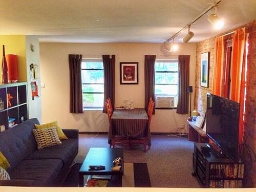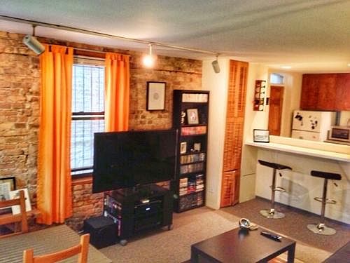LOOKING FOR NEW RENTER BEGINNING APRIL 1, 2017. ONE YEAR LEASE. Great location - 2 blocks from Damen and six corners. Garden unit. Unit sets up like a convertible or roomy studio (sliding door bedroom). Quaint, family-oriented neighborhood. Rent includes water. Gas and electric utilities are separate. Window AC and furnace heater. Free washer and dryer in building behind unit (shared with 2 others). Free street parking. Cats allowed (dogs not allowed).
