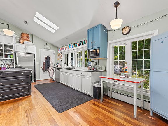 Waterfront on Sylvan Lake! Experience lakefront living with this ranch home featuring a walk-out basement, set on nearly an acre (.85 acres) in the highly sought-after Sylvan Lake community. From the moment you enter, you're welcomed by a dramatic wall of windows framing serene lake views. The open-concept kitchen, living room, and dining room boast cathedral ceilings, skylights, hardwood floors, and a double-sided fireplace. The kitchen offers soapstone counters, a spacious island perfect for gatherings, and direct access to the garage for easy grocery unloading. Off the dining room, a screened-in porch overlooks the pier-an ideal spot to relax and enjoy the outdoors. The primary suite features lake views, a walk-in closet, and an ensuite bathroom ready for your finishing touches. Two additional bedrooms, each with hardwood floors and wall closets, share the hall bath. The walk-out lower level expands your living space with heated floors, a wood-burning fireplace, another wall of windows, a family room, full bath with shower, laundry area, and a large unfinished storage/workshop. Step outside to the stamped concrete patio for lakeside enjoyment. Additional highlights include: Oversized lot extending from the neighbor's pier to an association-owned parcel. Long driveway with parking for 6+ cars, plus a 2-car garage. Fremont School District. Boiler heat and central air. This home does require some work-yet it's a rare chance to own nearly an acre of waterfront property with tremendous potential in one of the area's most desirable communities.
