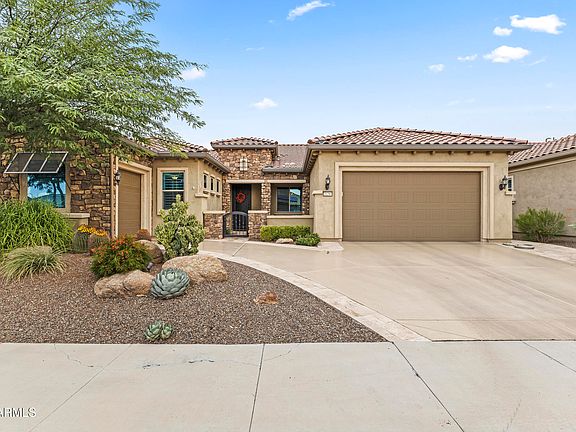 Discover your desert oasis on Lakes Hole #5 of the Troon Copper Canyon Golf Course. This 2,538 sq ft Endeavor on a quiet residential street shines with fresh 2024 upgrades. New interior paint, two-tone accents, 5'' baseboards, central vacuum, Delta touch-faucet and more. Elegant finishes include crown molding, coffered ceilings, hardwood plank flooring, plantation shutters, and an open concept kitchen with granite, butler pantry, wine fridge, and upgraded KitchenAid appliances. Outdoors, a travertine patio with fire pit frames golf and water views. Energy efficiency abounds with owned solar, whole-house soft water, and an EXTENDED, INSULATED, TEMPERATURE CONTROLLED-2 car garage with epoxy floors, cabinets, sink, plus separate golf cart garage. This is a desert oasis of comfort and style.