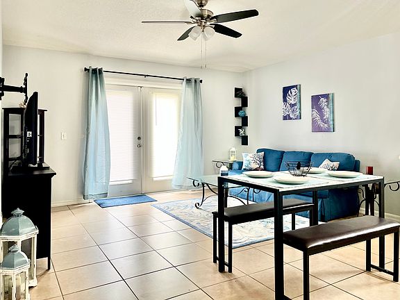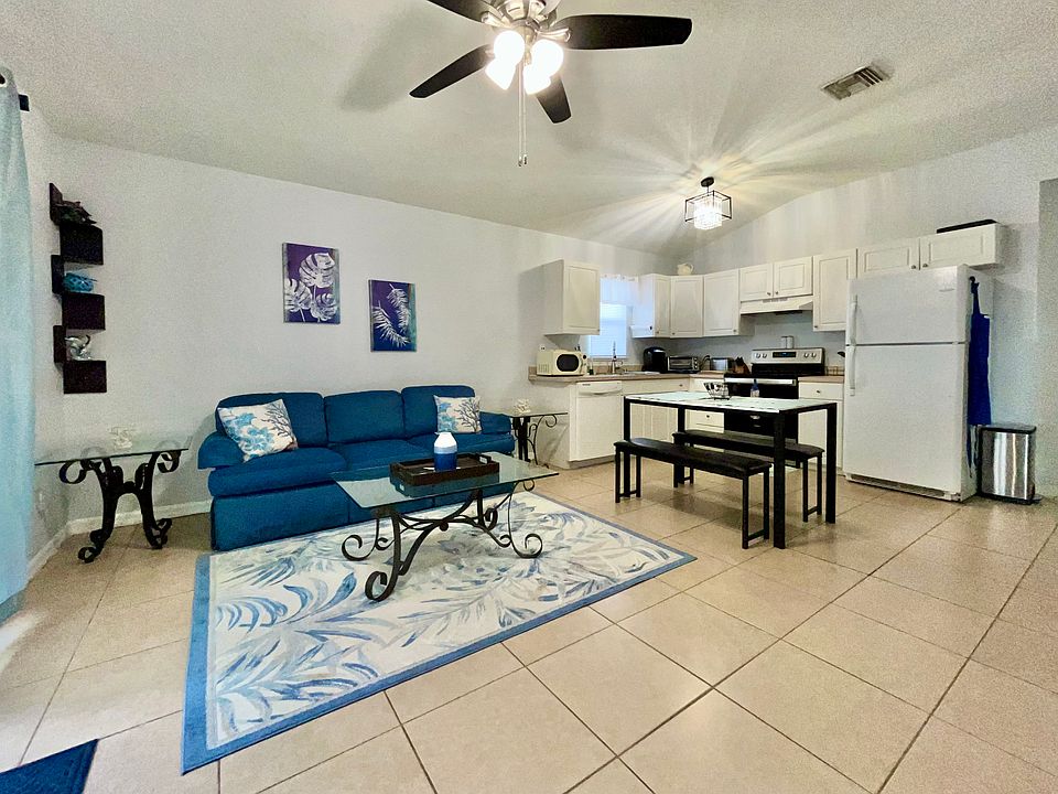 Fully furnished coastal style 2bed/2bath CBS home with a one car garage, great for storage! This beautiful home is complete with a water softener system, large capacity front load washer/dryer, multiple small kitchen appliances, cookware, utensils, dishes, linens and so much more. Everything you need to comfortably move right in, including a fenced in yard for a dog. Water and trash pick up included in this quiet neighborhood with easy access to several beaches and boat ramps. Retail shopping and grocery stores are very nearby along with botanical gardens and a nature conservatory down the road for hiking and picnics.