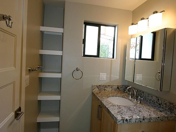Remodeled beach bungalow! Very large studio apartment with vaulted ceiling in living room and skylight window in kitchen. Fantastic location, only 2 blocks from Moonlight Beach, walking distance to downtown Encinitas cafes, restaurants, Lazy Acres market, and train station. All new stainless appliances, including gas range and water filtration in kitchen. Beautiful granite counter tops, new cabinets, new flooring throughout, air conditioning, and full size washer & dryer in unit. Also includes open patio in front, a second private patio, and designated parking space. Rent $2895.00/month plus deposit. Non-smoking, No pets. Owner pays for water, trash and gas