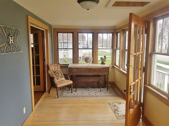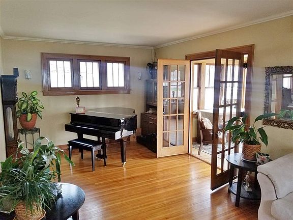 Beautifully done!! Enclosed 3 season porch with lots of windows and south exposure greets you when entering this 3+ bedroom home! From there are French doors opening to the living room large enough to hold a small grand piano. Galley type kitchen includes appliances. Separate dining area features nice built-ins for storage and some seating. Separate bonus room is currently used as a TV room and has patio doors opening to the backyard deck. This room could also be used as a bedroom (4th bedroom) or office. Full bath is located on main floor. Upper level has a spacious hallway leading to 3 bedrooms, some with built in storage. Partial finished basement includes a carpeted family room and extended room with utility sink and extra storage. 3/4 bath and laundry room is in lower level and includes washer and dryer. Beautifully landscaped yard is partially fenced and has attached deck and includes shed. Double detached garage. This home is graced with original woodwork and hardwood floors that are in excellent condition! Dual heat with electric forced air backup. Memories are ready to be made here! Great location!